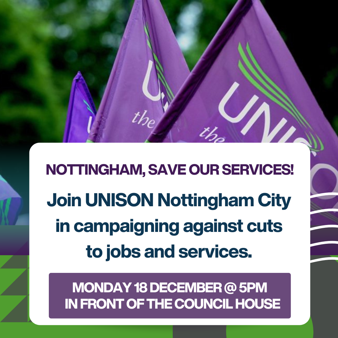The Branch Secretary and Branch Chair have today issued a press release about the cuts at Nottingham City Council. Read the Press Release PRESS RELEASE 14.12.23
